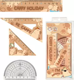 Набор чертежный (линейка 15 см, 2 треугольника, транспортир) Кокос Капибара (423506)