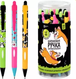Ручка шариковая автоматическая Феникс 0.7 мм синий (панда, корги, котик) (53494)