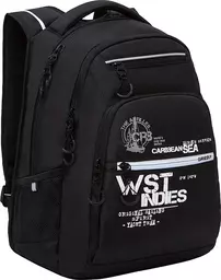 Рюкзак подростк 2 отделения 5 карманов анатомическая спинка Гризли черный 31*43*20 см м (Ru-131-1)