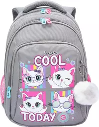 Рюкзак школьный 2 отделения 2 кармана анатомическая спинка Гризли Серый 27*40*20 см (Rg-561-1)