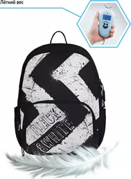 Рюкзак молодежный 2 отделения 3 кармана уплотненная спинка Берлинго Лайт Блэк Вайт 39.5*28*16 см