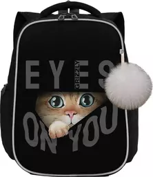 Рюкзак школьный 1 отделение 2 кармана анатомическая спинка Гризли черный с котенком 26*37*16 см (Rg-265-1)