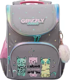 Рюкзак школьный 1 отделение 3 кармана анатомическая спинка Гризли Серый 25*33*13 см (Ram-584-2)