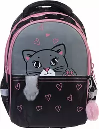 Рюкзак школьный 2 отделения 2 кармана Хатбер Примари Скул Котик в кармашке 38.5*26*17 см (Nrk_87055 )