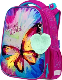 Рюкзак школьный 2 отделения 2 кармана анатомическая спинка Берлинго Эксперт Колорфул Батерфляй 37*28*16 см