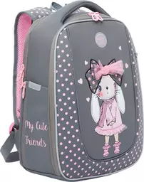 Рюкзак школьный 2 отделения 2 кармана анатомическая спинка Гризли серый 29*36*18 см д (Raf-292-3)