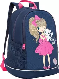 Рюкзак школьный 2 отделения 2 кармана анатомическая спинка Гризли синий 28*38*18 см (Rg-363-9)