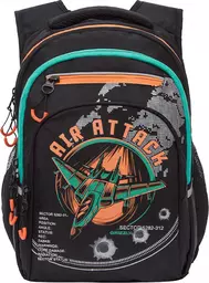 Рюкзак школьный 2 отделения 4 кармана анатомическая спинка Гризли черный - оранжевый 28*36*20 см М (Rb-150-1)
