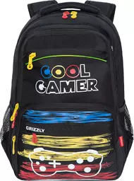 Рюкзак школьный 2 отделения 4 кармана эргономическая спинка Гризли черный 28*39*19 см М (Rb-154-1)