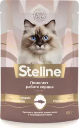 Корм для кошек Steline 85г для стерилизованных треска-креветки и ламинария в желе