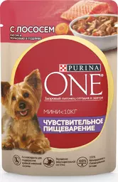 Корм влажный Purina One Мини для взрослых собак мелких пород с лососем, рисом и морковью в подливе, 85г