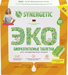 Таблетки для посудомоечных машин Synergetic бесфосфатные экологичные, 100шт