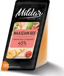 Бзмж Сыр Маасдам Рейф м.д.ж. 45% Mildar, 220гр