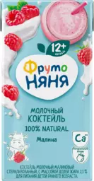 Коктейль молочный Фрутоняня малина с трубочкой для детей 2.1%, 200 мл