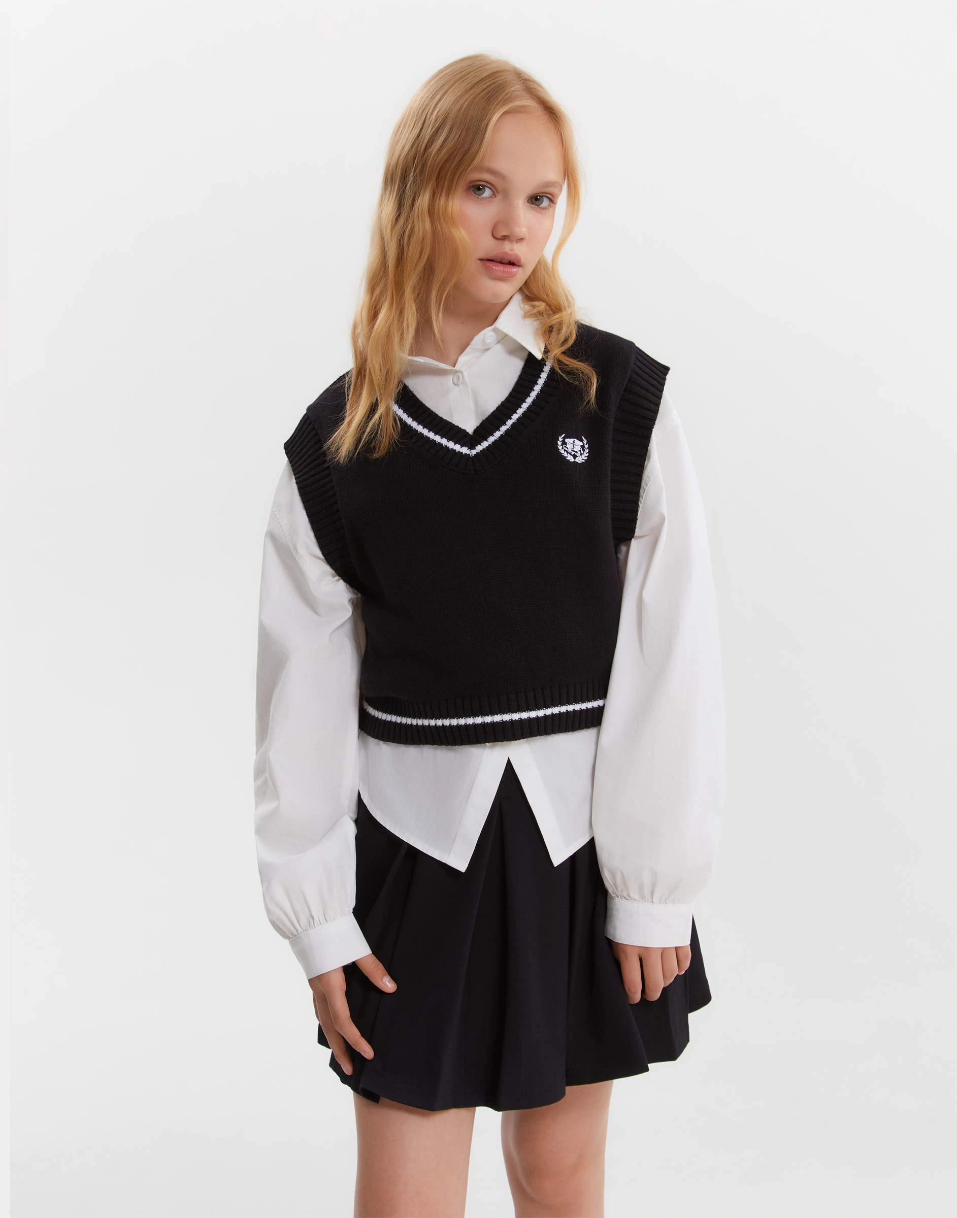 Чёрный вязаный жилет с вышивкой Gsw008049-1