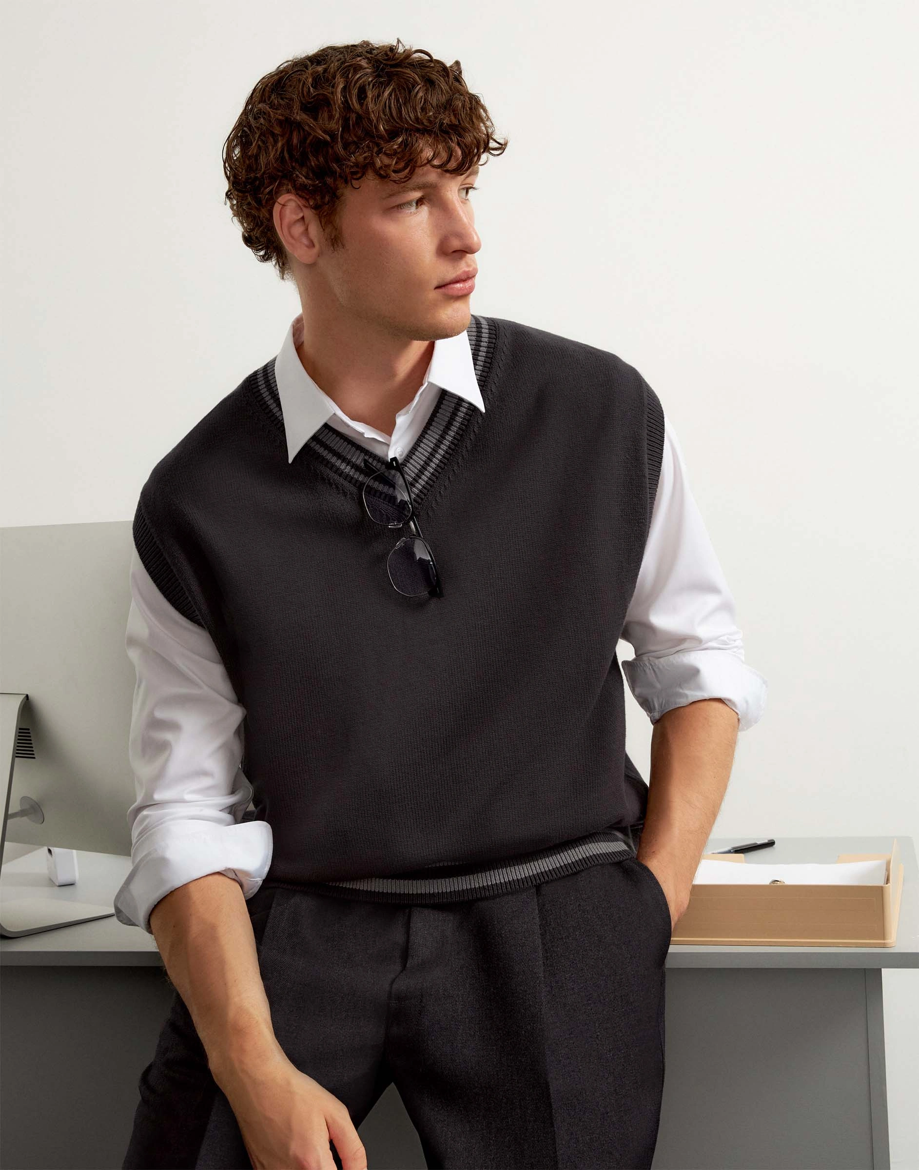 Тёмно-серый вязаный жилет Bsw002532-2