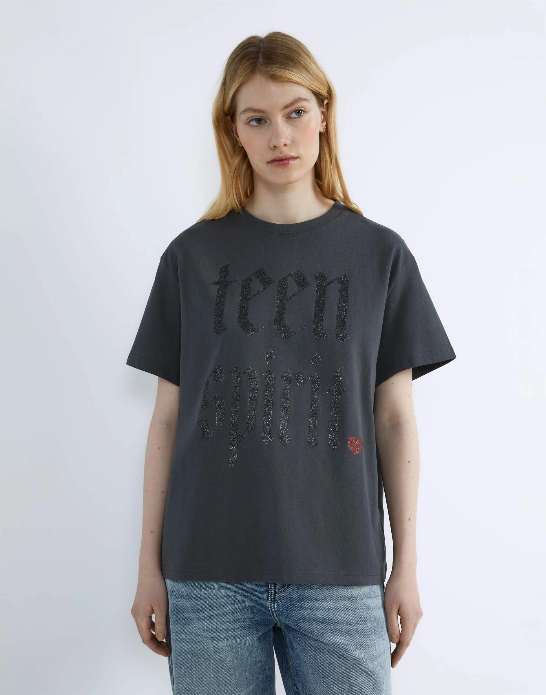 Серая удлинённая футболка oversize с принтом Gkt026596-1