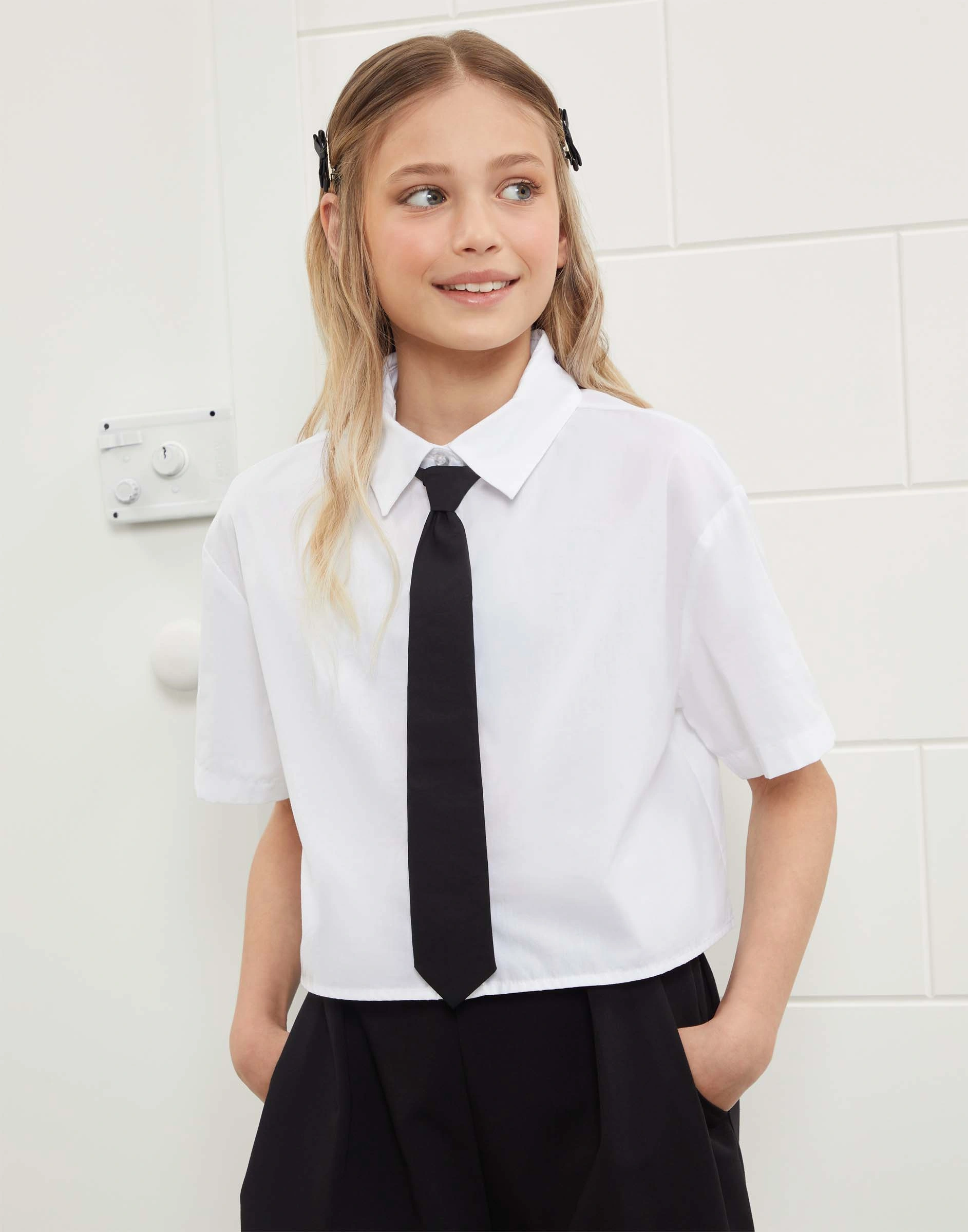 Белая укороченная рубашка с галстуком Gse001652-1