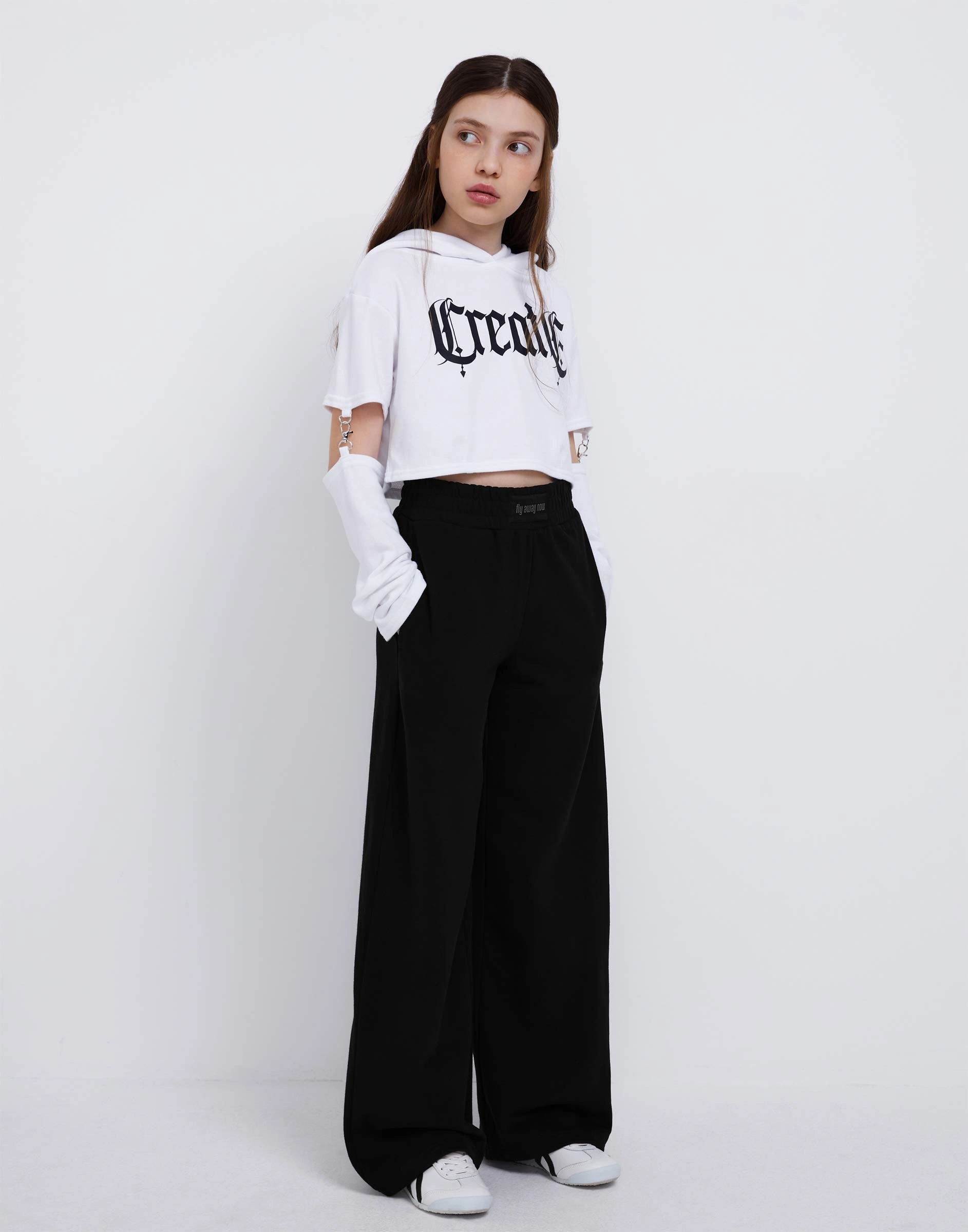 Чёрные спортивные брюки Wide leg с нашивкой Gac024539-1