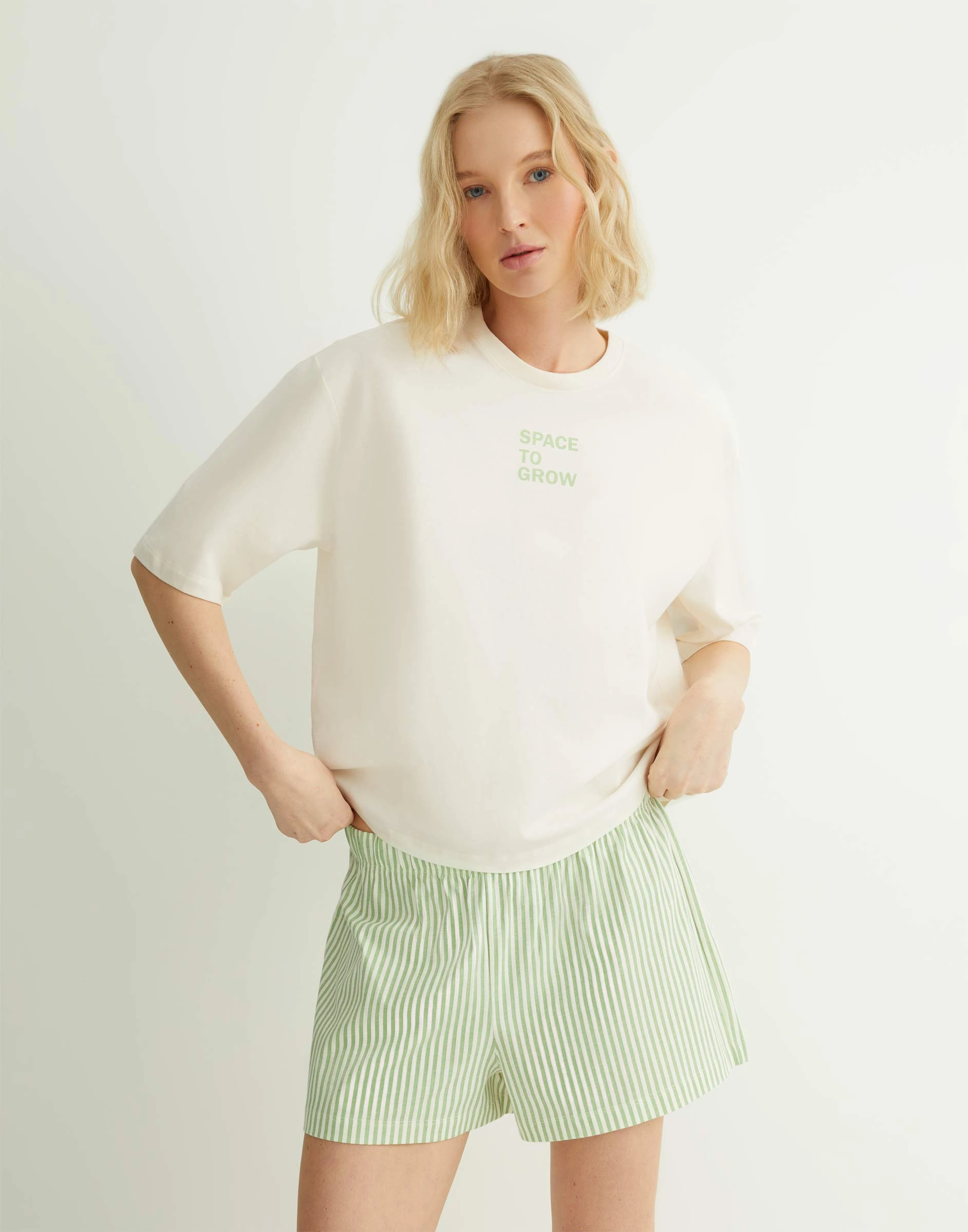 Молочная пижамная футболка oversize с надписью Gsl002727-1