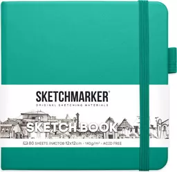 Скетчбук 12*12 см 80 л. на резинке Скетчмаркер изумрудный 140 г/м2 (2314602Sm)