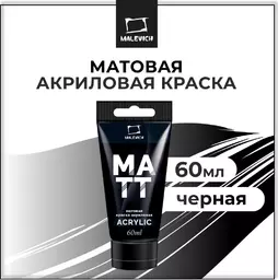 Краска акриловая художественная матовая Малевичъ черная туба 60 мл (618005)