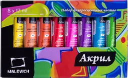 Краски акриловые флуоресцентные 8 цв.*12 мл в тубах Малевичъ (612005)