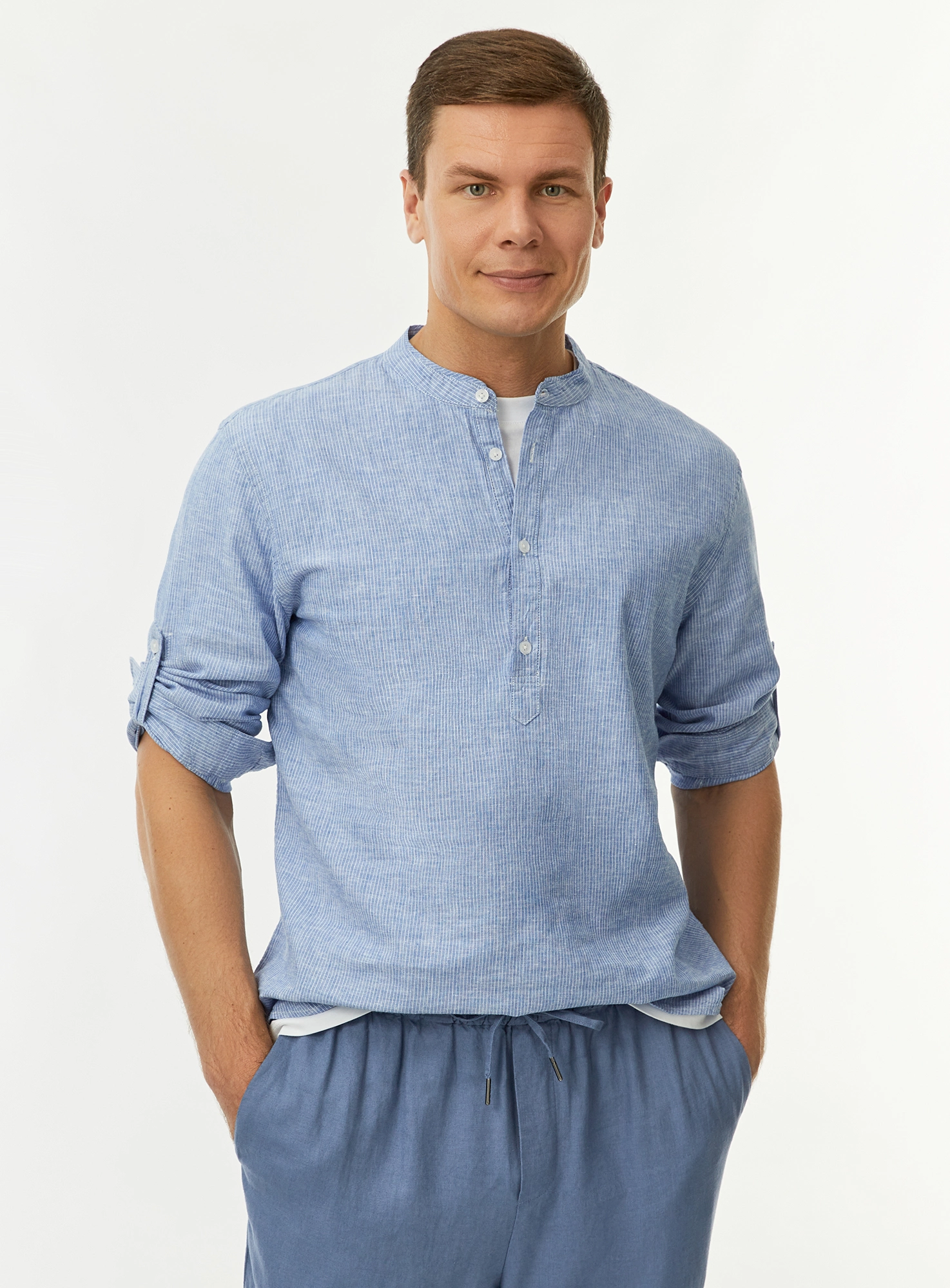 Рубашка льняная с воротником-стойкой