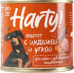 Корм Harty 240г для собак с чувствительным пищеварением паштет с индейкой и уткой