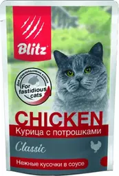 Блиц консервированный корм для кошек Классик/курица, потрошки кусочки в соусе 85 г