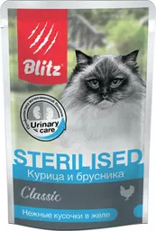 Блиц консервированный корм для кошек Классик/стерилизованные/курица, брусника кусочки в соусе 85 г