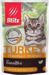Блиц консервированный корм для кошек Сенситив/индейка, печень кусочки в соусе 85 г