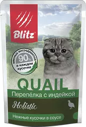 Блиц консервированный корм для кошек Холистик/перепелка, индейка кусочки в соусе 85 г