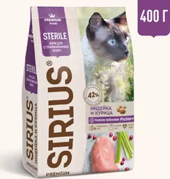 Сириус сухой корм для кошек Стерилизованные/индейка, курица 400 г