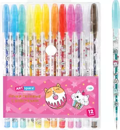 Ручка гелевая набор 12 цв. Арт Спэйс 1.0 мм с блестками Кот-сластена (314526)