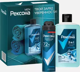 Рексона Мен набор для мужчин Сильнее сомнений (гель для душа 490 мл + дезодорант спрей 150 мл)