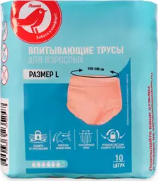 Подгузники-трусы для взрослых Ашан Красная птица L 110-140 см, 10 шт