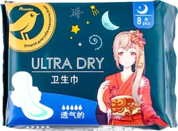 Прокладки гигиенические Ашан Золотая птица Ultra Dry Night 5 капель, 8 шт
