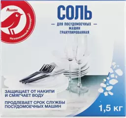 Соль гранулированная для посудомоечных машин Ашан Красная птица, 1.5 кг