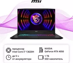 Ноутбук игровой Msi Katana 17 B13vek-1447xru-bb71362h16gxxdxx/17.3/1920x1080 пикс./ips/core i7/rtx4050 6Gb/16гб/1тб/dos