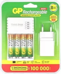 Зарядное устройство + аккумуляторы Gp Usb + 4 аккум. Аa (Hr6) 2700mah + адаптер (Gp 270Aahc/cpba-2cr4)