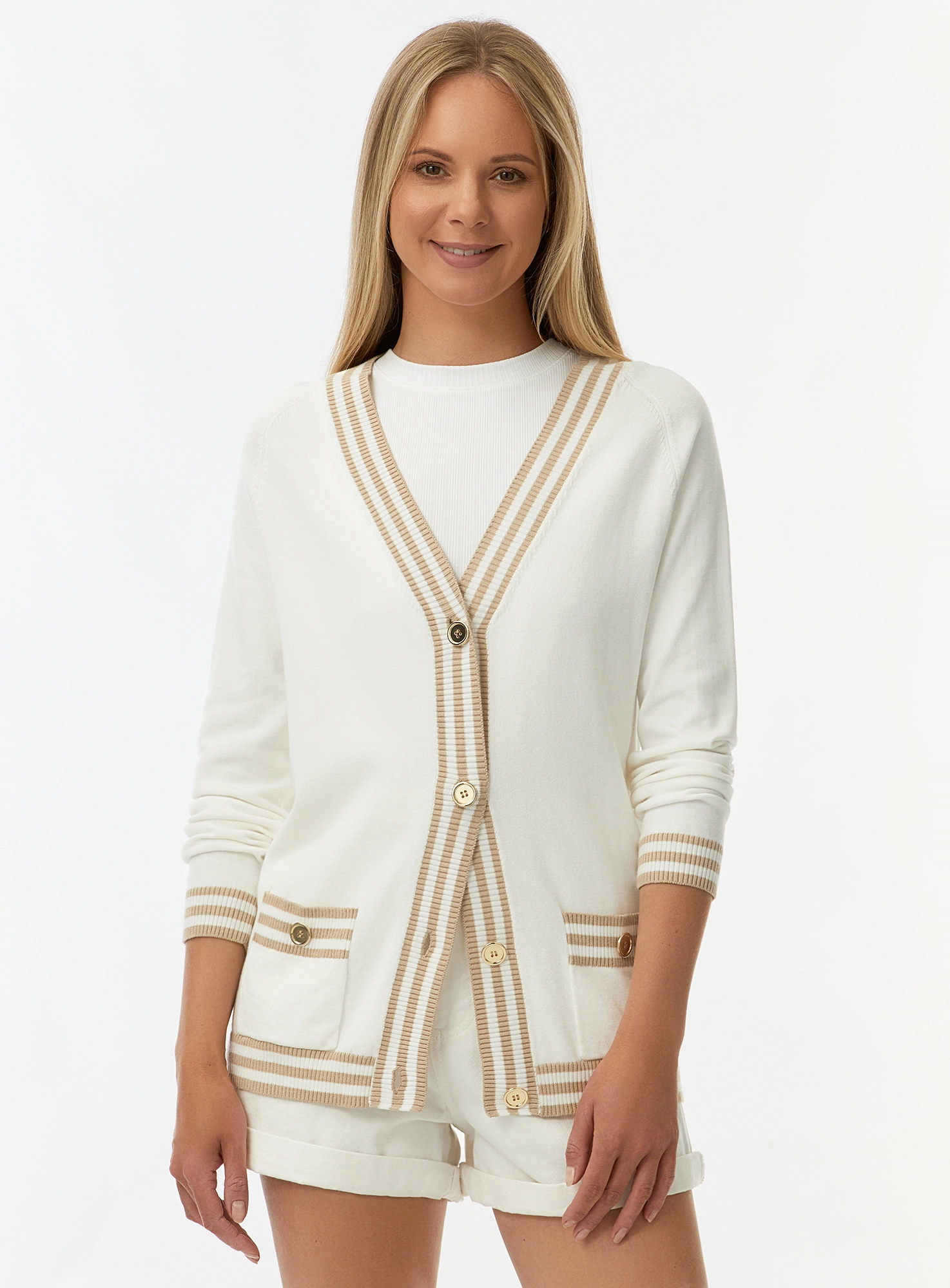 Кардиган удлиненный с контрастной отделкой