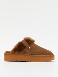 Женские шлепанцы Tendance (натуральная замша/натуральный мех), темно-коричневый