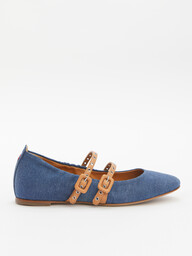 Балетки мэри-джейн из денима Halmanera (хлопок/натуральная кожа), синий