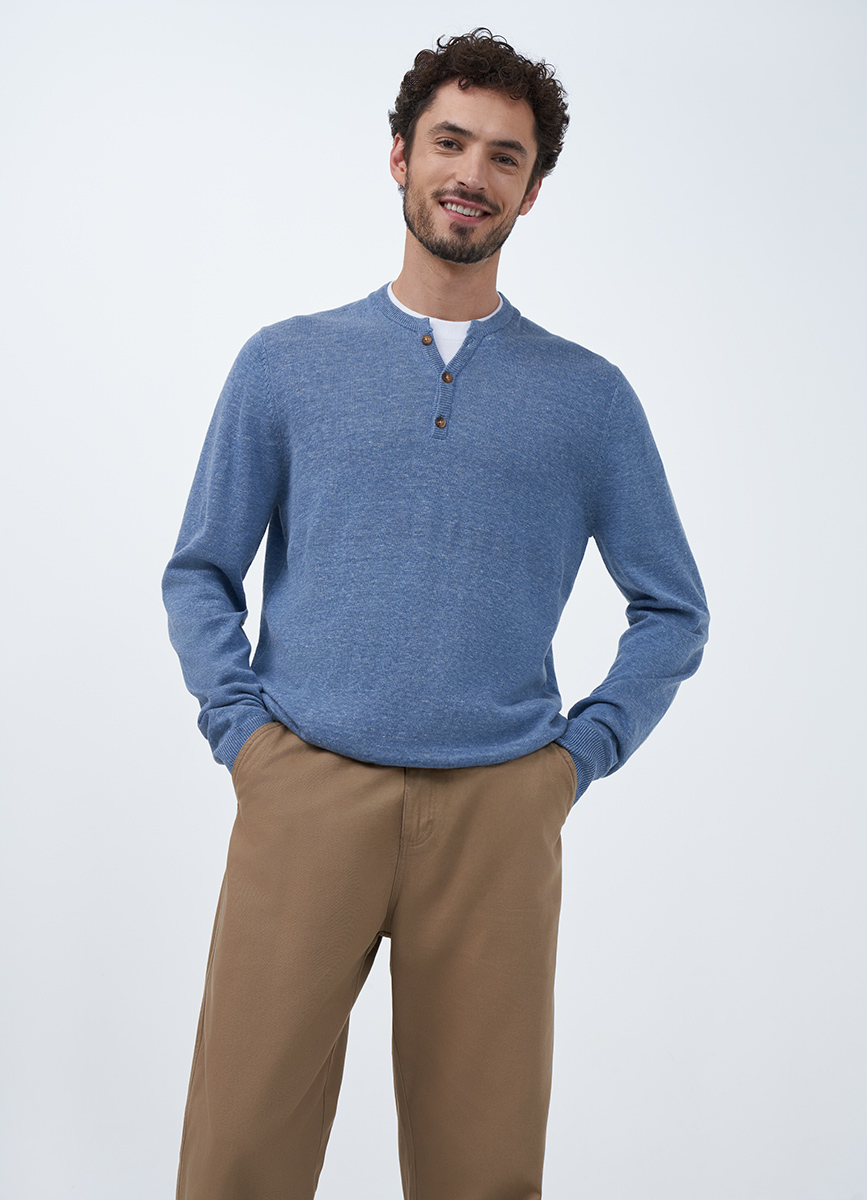 Джемпер голубой с воротником хенли 33527530299