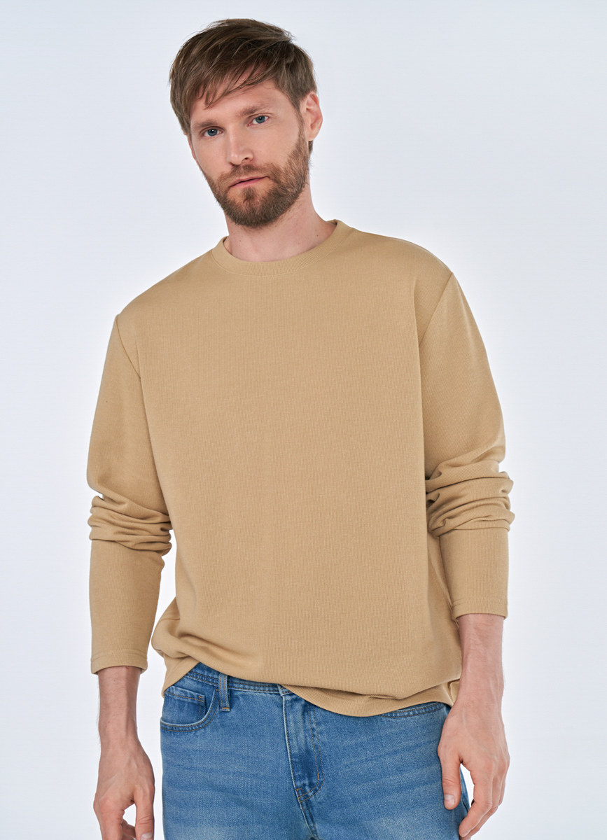 Лонгслив бежевый с жаккардовым бейджем 33958060299