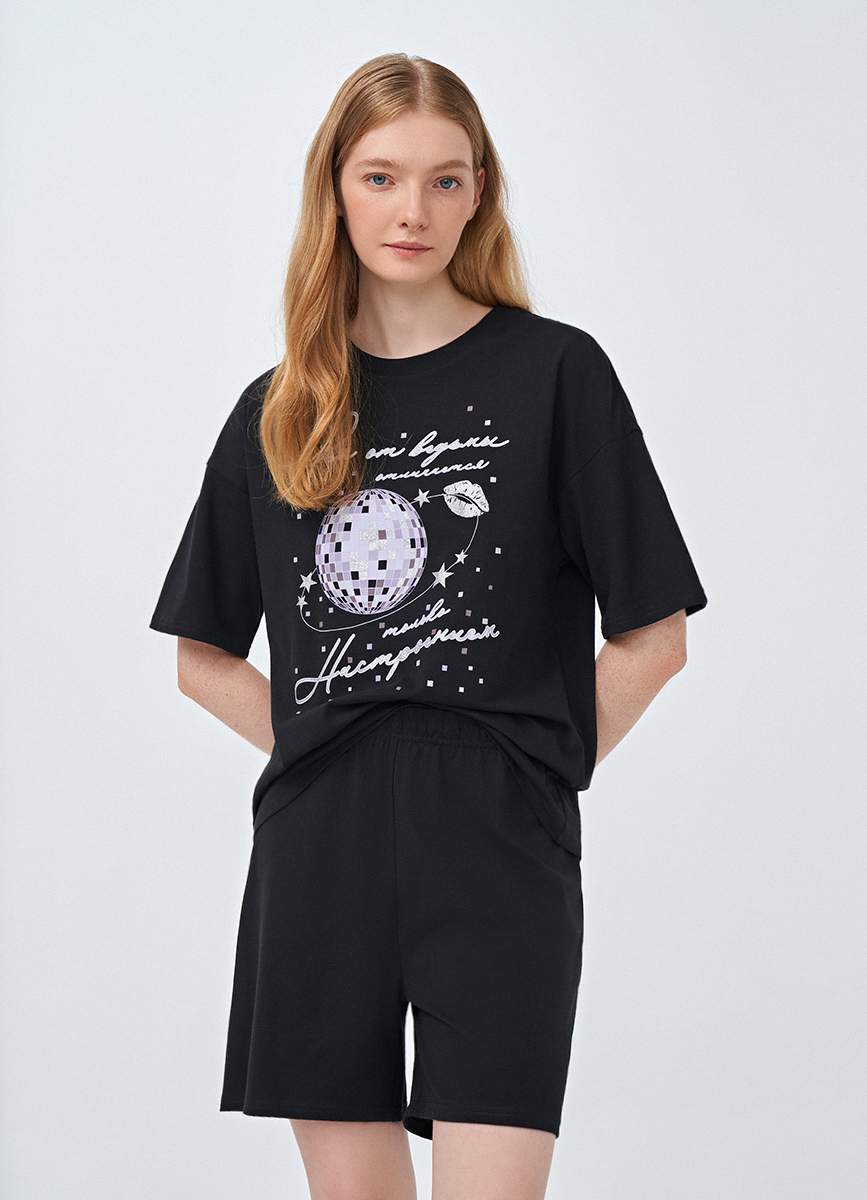 Пижама черная с принтом 35701110299