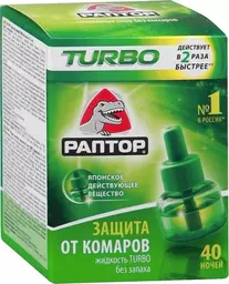 Жидкость для электрофумигаторов Раптор Турбо без запаха 40 ночей без комаров