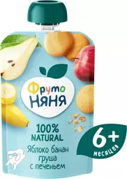 Пюре Фрутоняня из яблок бананов и груш с печеньем с 6 месяцев, 90г