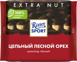 Шоколад тёмный Ritter Sport с цельным лесным орехом, 100г